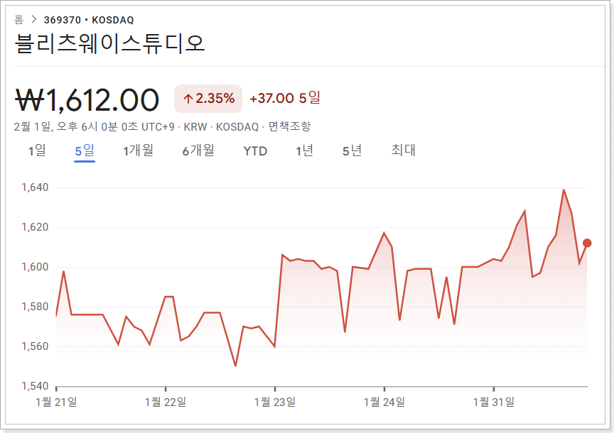 블리츠웨이스튜디오 주가 정보 바로가기(Google Finance)