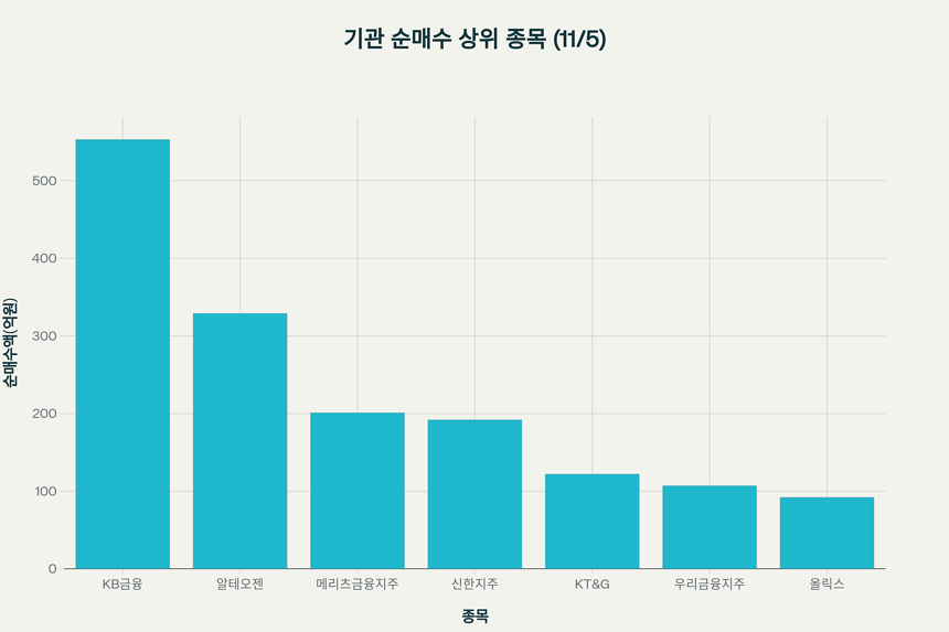기관 순매수 상위 종목 (2025년 11월 5일 기준)