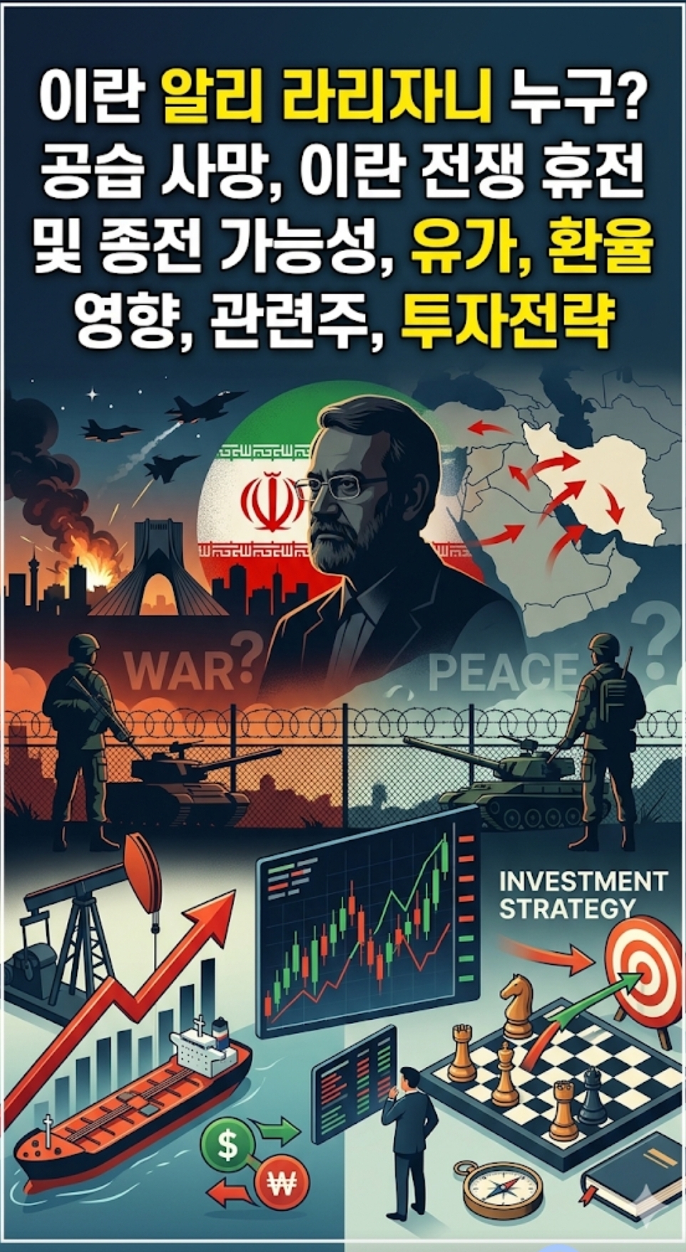 미국과 이스라엘의 전격적인 이란 공습 이후, 중동의 전운이 최고조에 달하면서 국내외 증시와 환율, 유가가 요동치고 있습니다. 특히 최근 불거진 알리 라리자니 최고국가안보회의 의장의 공습 사망설부터 시작해, 휴전 및 종전 가능성, 거시경제 지표의 변화, 그리고 현시점의 투자 전략까지 독자 여러분의 궁금증을 완벽하게 해결해 드리기 위해 상세히 정리해 보았습니다.