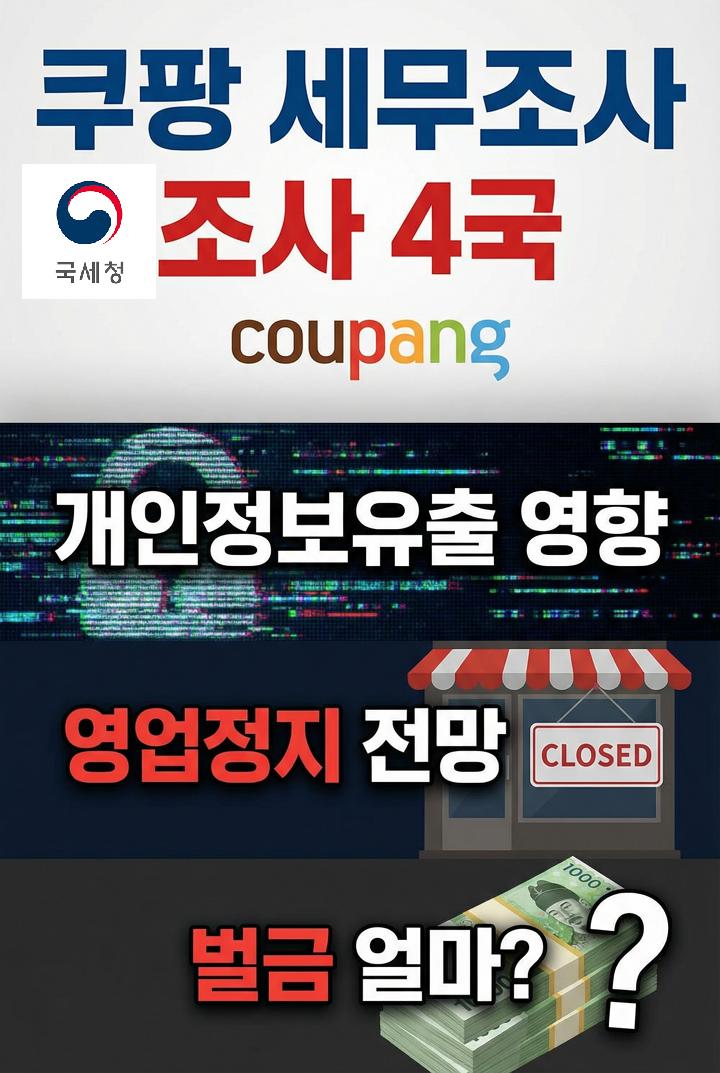 #쿠팡세무조사 #국세청조사4국 #개인정보유출 #쿠팡해킹 #크리덴셜스터핑 #쿠팡집단소송 #쿠팡영업정지 #탈팡 #쿠팡주가 #특별세무조사 #쿠팡벌금 #쿠팡과징금 #쿠팡과태료