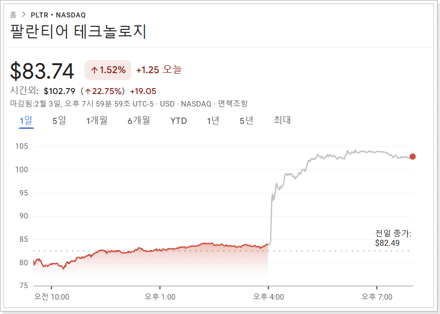 팔랄티어 테크놀로지 주가 정보 바로가기(Google Finance)